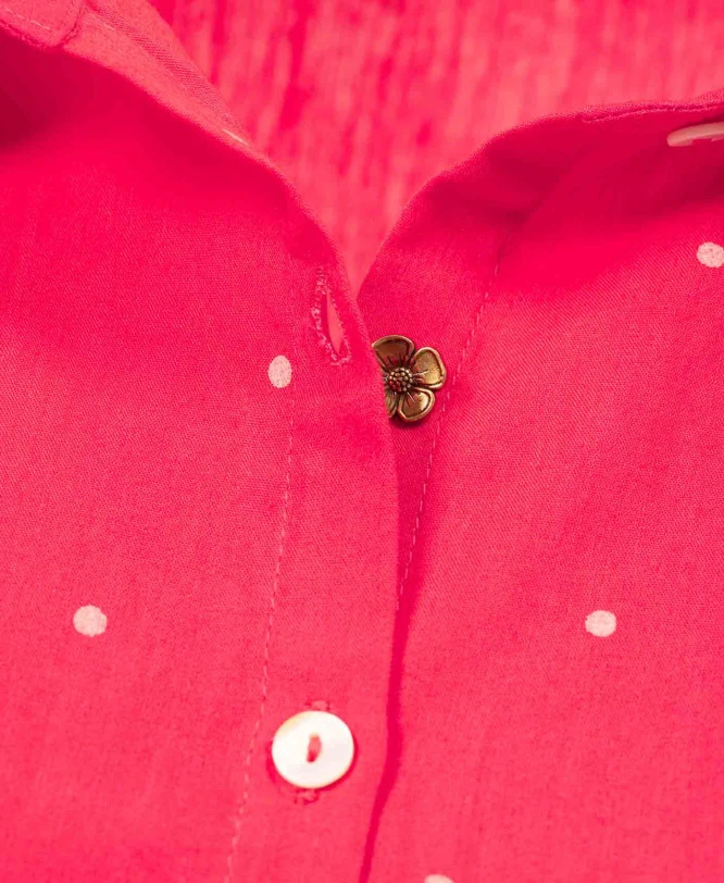 Chemise 50% coton 50% modal, coloris rose et pois blanc