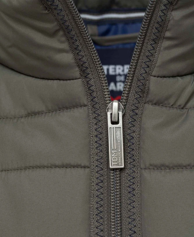 - Ouverture devant zippée avec point zig-zag et curseur gravé