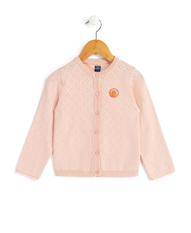 Les détails soignés comme les points fantaisie et les boutons pailletés ajoutent une touche d’originalité, tandis que les finitions en bord côte garantissent confort et maintien