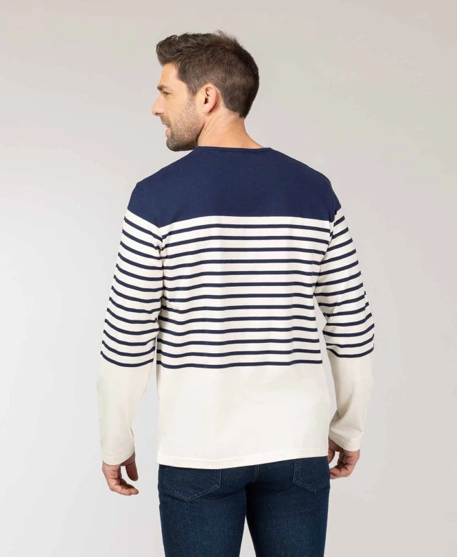 Avec ses rayures bicolores et son empiècement uni, la marinière MILKO incarne un style marin moderne et décontracté. Son design épuré et sa coupe parfaite en font une pièce facile à porter.