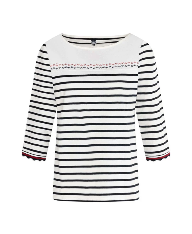 100 % COTON-fond blanc rayé marine-Empiècement blanc et motif marine et rouge sur le devant.-Bas des manches en bord côte fantaisie avec apport de rouge