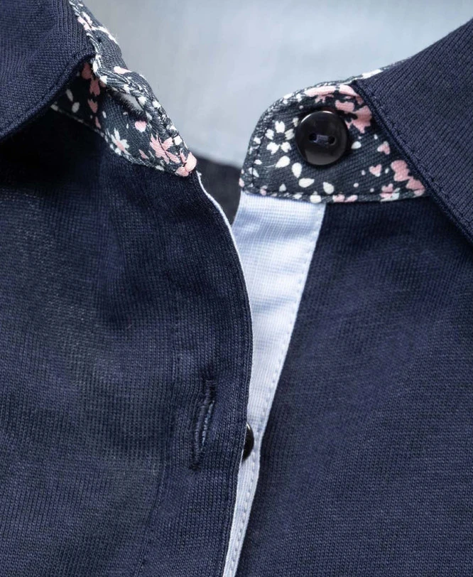100 % COTON-Col chemise en jersey marine – ouverture partielle sur le devant par boutons