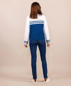 Son col et ses bas de manches contrastés viennent structurer la silhouette avec subtilité. L’ouverture boutonnée à l’avant lui confère une touche de féminité, tandis que la broderie logo sur la poitrine ajoute une finition discrète mais soignée. Un basique revisité, parfait pour une allure à la fois chic et décontractée.